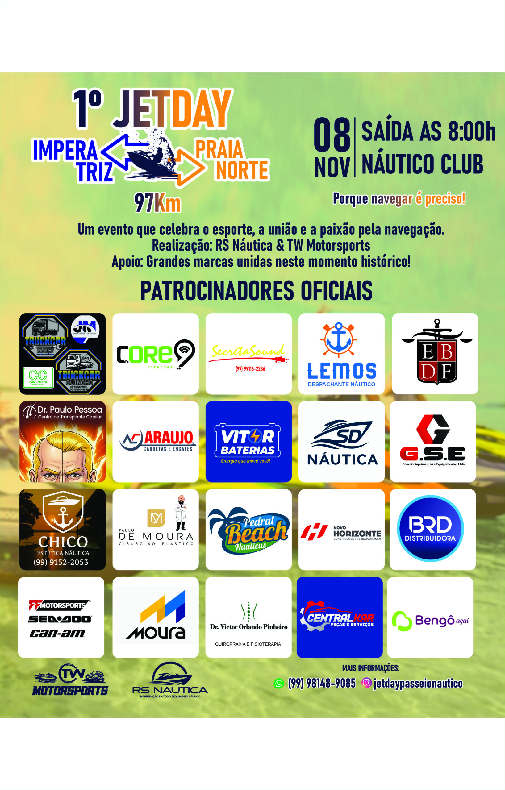 A Organização RS Náutica e a TW Motorsports estão preparando um evento épico para os amantes do mundo náutico. O 1° JET DAY Imperatriz é uma realização conjunta dessas duas empresas que promete reunir pilotos, empresários e entusiastas para uma aventura inesquecível nas águas do Rio Tocantins.