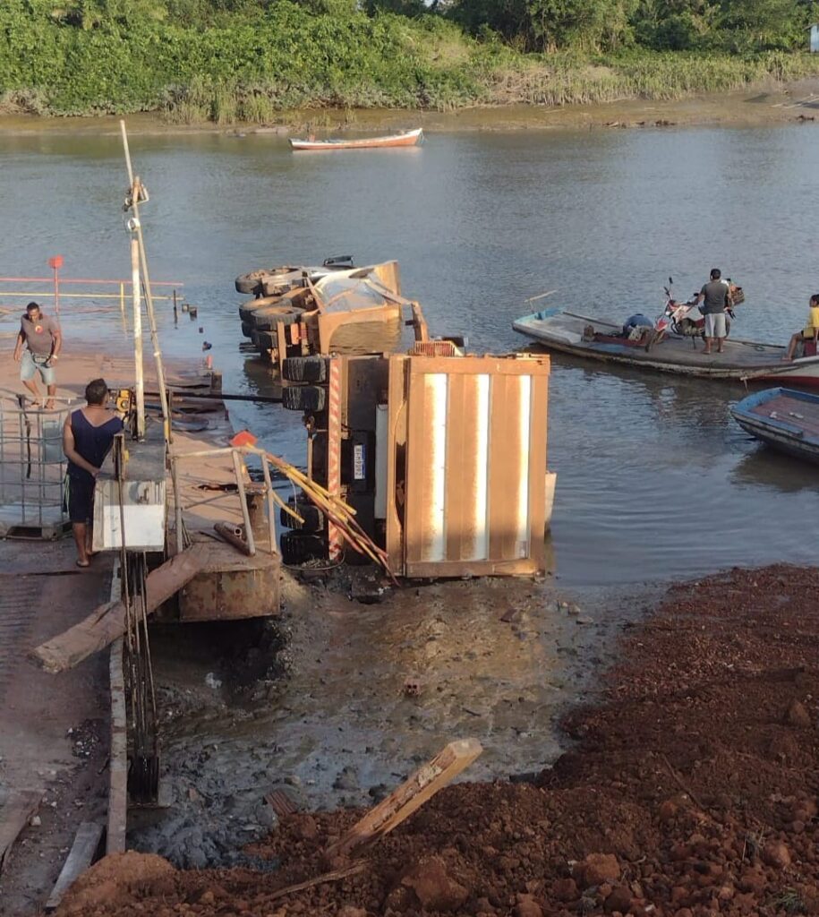 Em Cândido Mendes balsa naufraga no Rio Maraçacumé ao transportar três caçambas