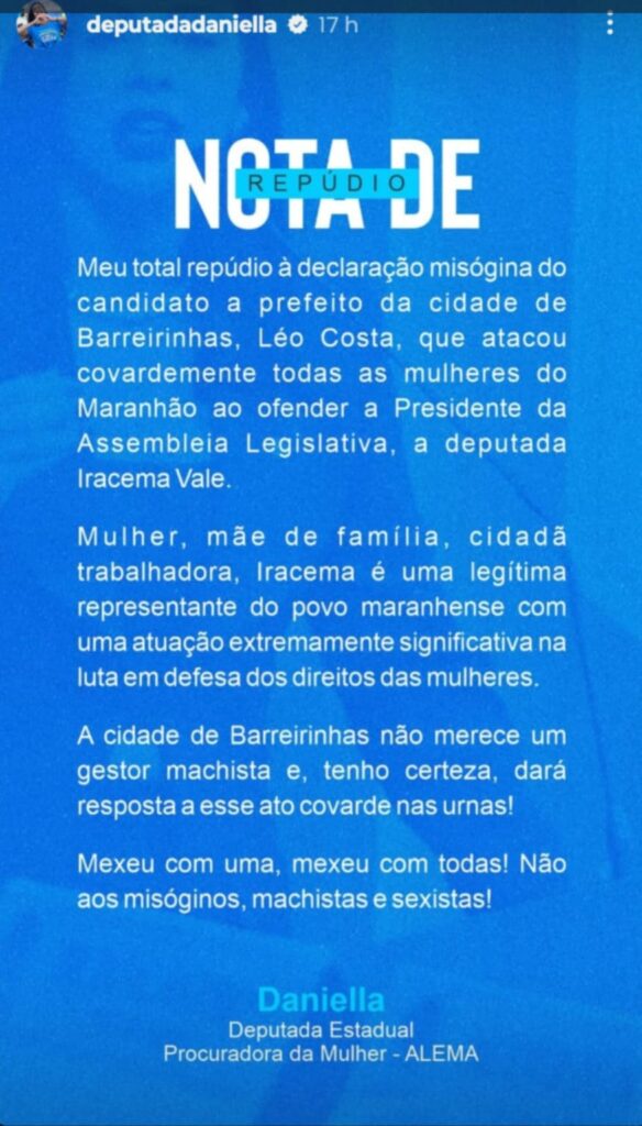Fala misógina de Léo Costa contra Iracema Vale causa indignação em Barreirinhas