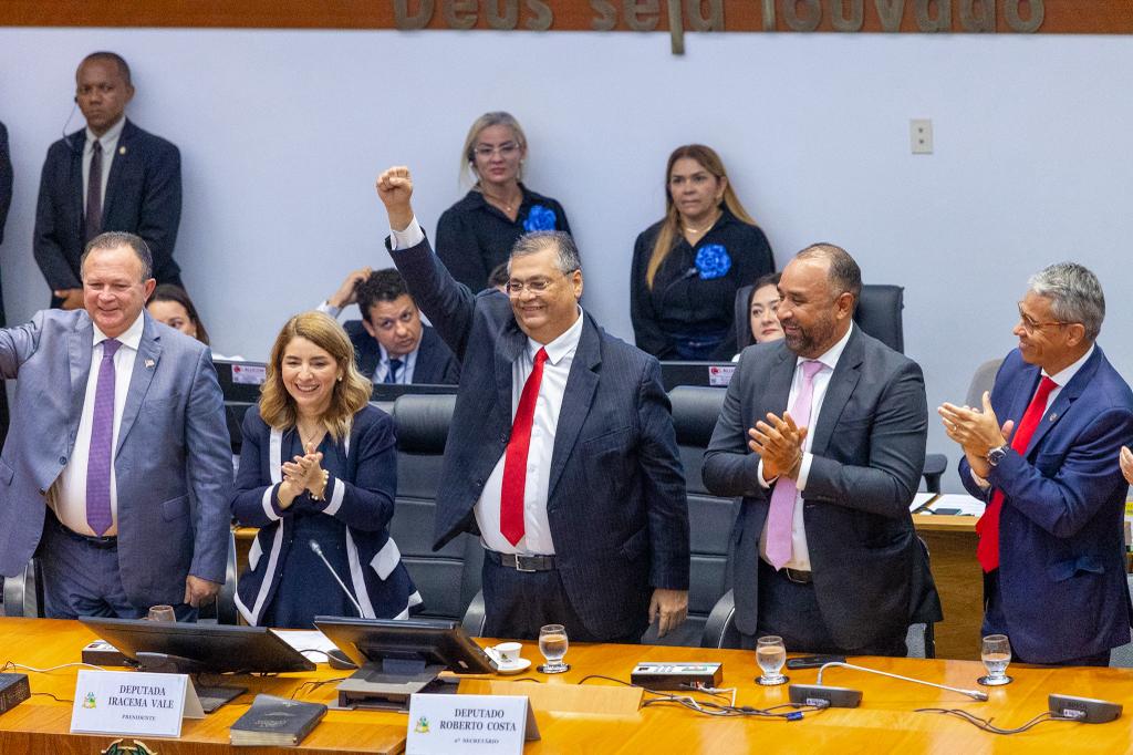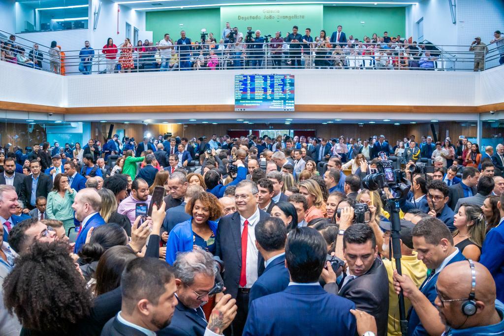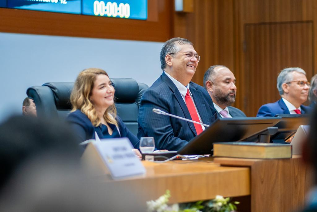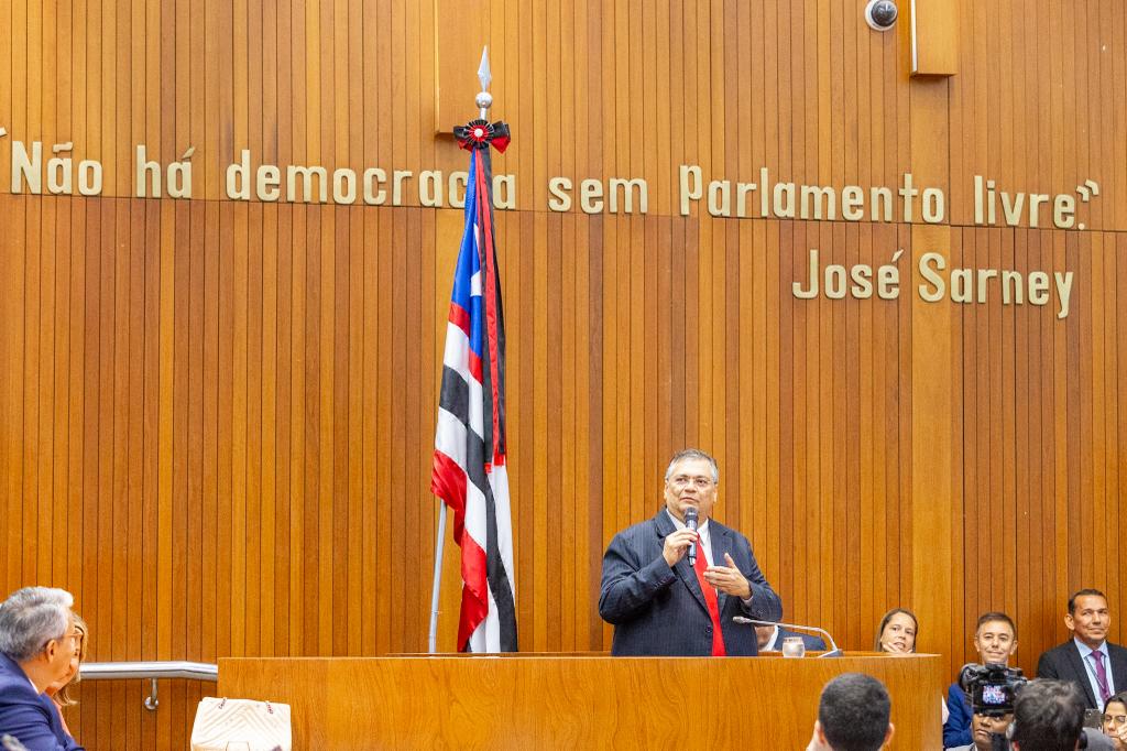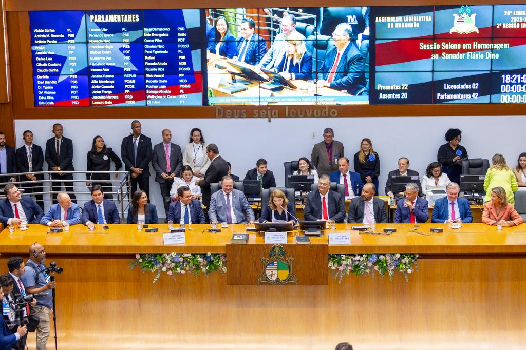 Em sessão solene realizada na tarde desta sexta-feira (2), a Assembleia Legislativa do Maranhão, por iniciativa do deputado Rodrigo Lago (PcdoB), homenageou o senador Flávio Dino, ex-governador, ex-ministro da Justiça e ministro nomeado do Supremo Tribunal Federal (STF). A proposição da homenagem foi subscrita pelos deputados Júlio Mendonça (PCdoB), Othelino Neto (PCdoB), Carlos Lula (PSB) e Leandro Bello (Podemos).