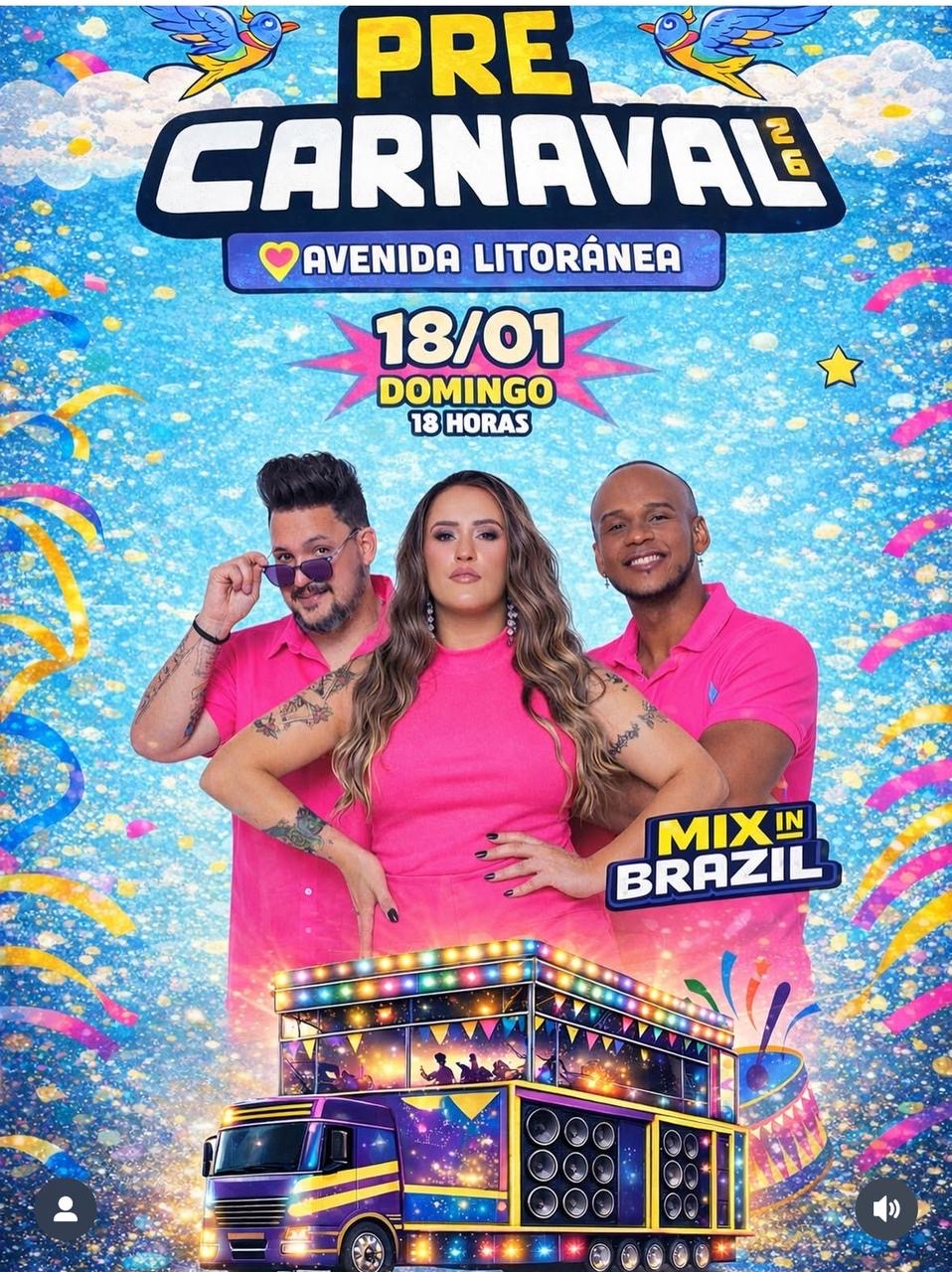 A Banda Mix In Brazil chega como sinônimo de festa, alto astral e amor pelo Carnaval, contribuindo para fortalecer ainda mais o calendário cultural do Maranhão. Quem for à Avenida Litorânea pode esperar um espetáculo à altura da maior festa popular do Brasil.
