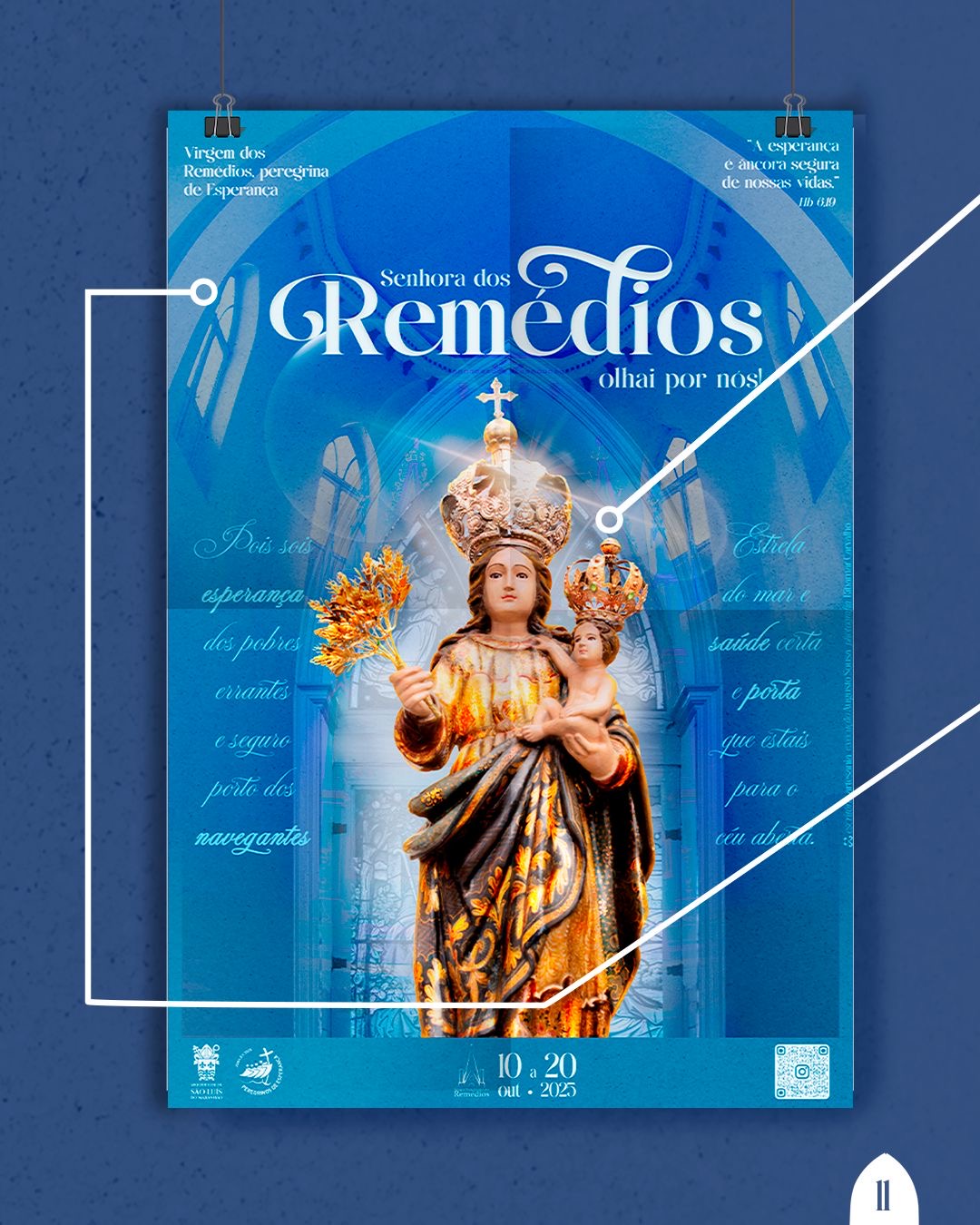 Inspirada na imagem de Maria como aquela que caminha com seu povo, sobretudo nos momentos mais desafiadores, a identidade visual deste ano busca traduzir, em símbolos e cores, a força da esperança que brota da fé. “Contemplamos Maria, nossa Mãe dos Remédios, como Peregrina fiel, que jamais abandona seus filhos. Mesmo diante dos desertos e tempestades da vida, ela segue apontando para Cristo, nosso refúgio seguro”, reflete a comissão organizadora.