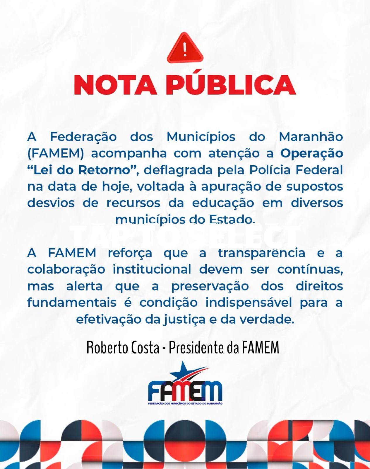 A FAMEM reafirma sua confiança e total apoio à atuação dos órgãos de controle externo da administração pública, como Polícia Federal, Controladoria-Geral da União, Tribunal de Contas da União e Poder Judiciário. Contudo, é necessário destacar que princípios constitucionais como a Legalidade, a Ampla Defesa e o Contraditório são irrenunciáveis.