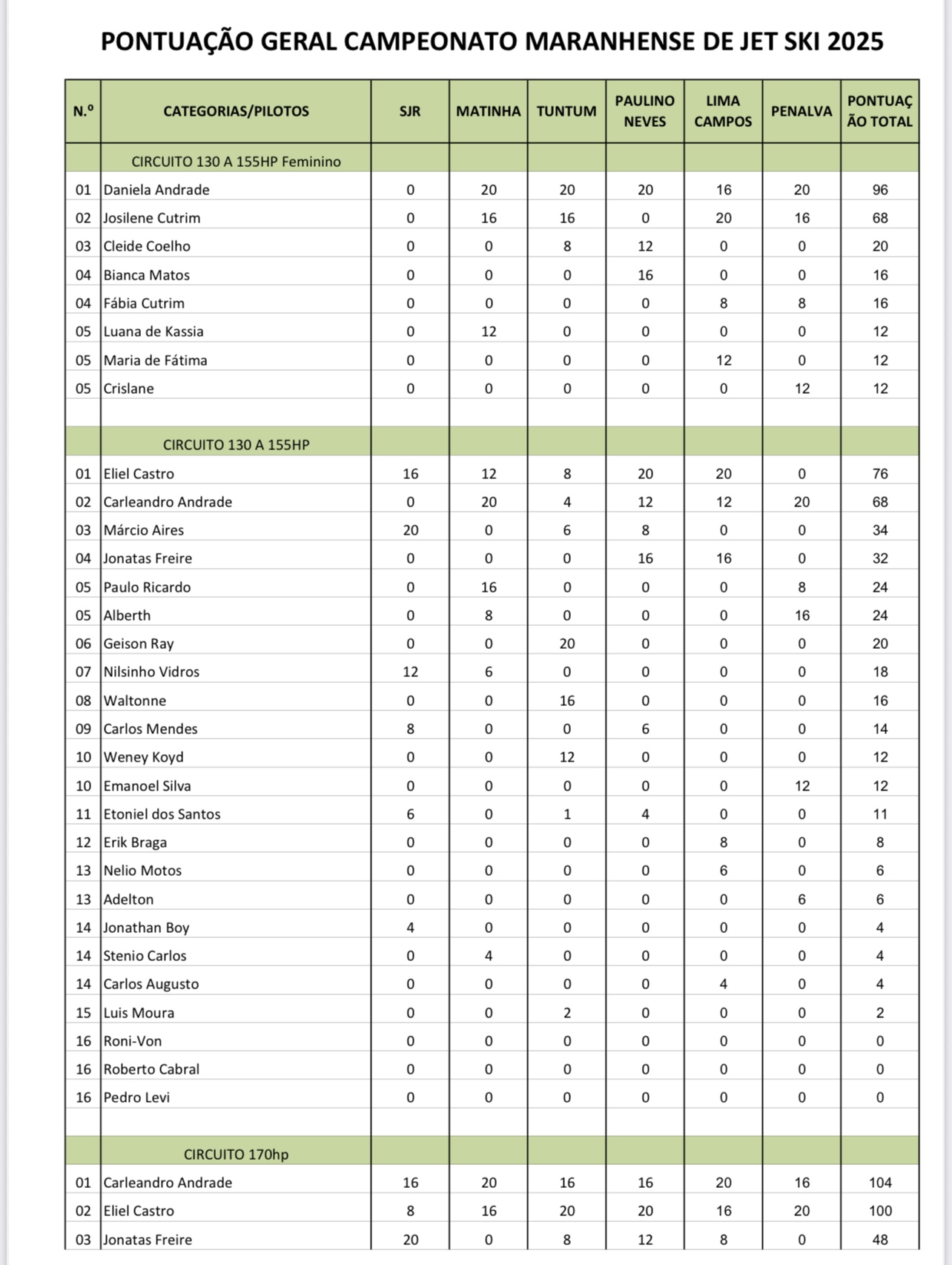 Após seis etapas de muita disputa, ultrapassagens e emoção, o Circuito Maranhense de Jetski 2025 chegou ao fim destacando os grandes nomes da temporada.