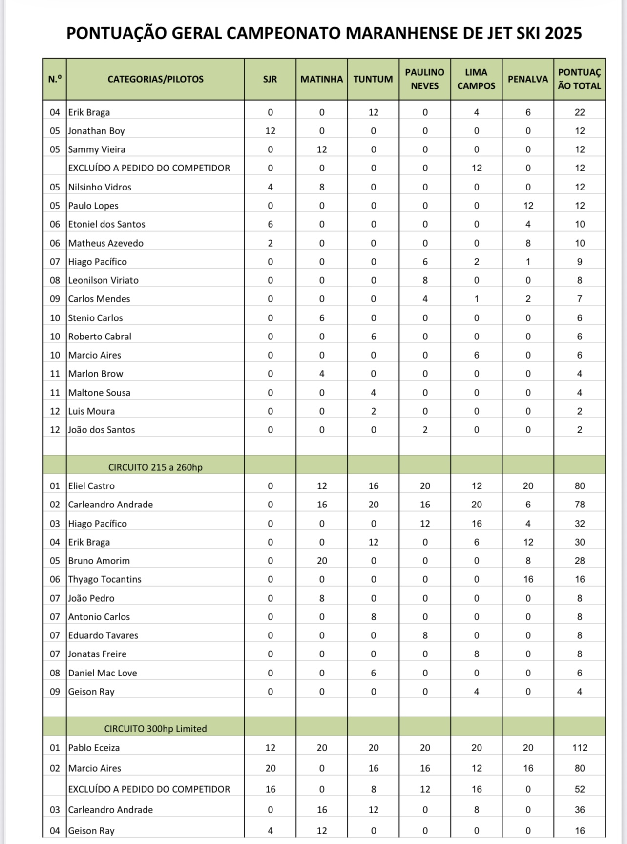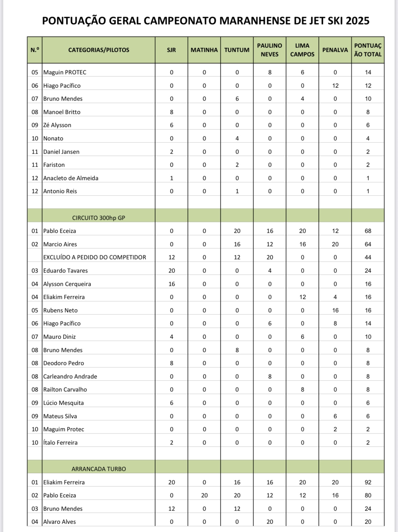 Ao longo das competições, milhares de pessoas passaram pelas arenas montadas às margens de rios, lagos e balneários, acompanhando de perto a adrenalina das provas e vibrando com cada chegada. Pilotos, equipes, patrocinadores, apoiadores e prefeituras municipais estiveram juntos em uma verdadeira força-tarefa para colocar o Maranhão na rota dos grandes eventos de jetski do país.