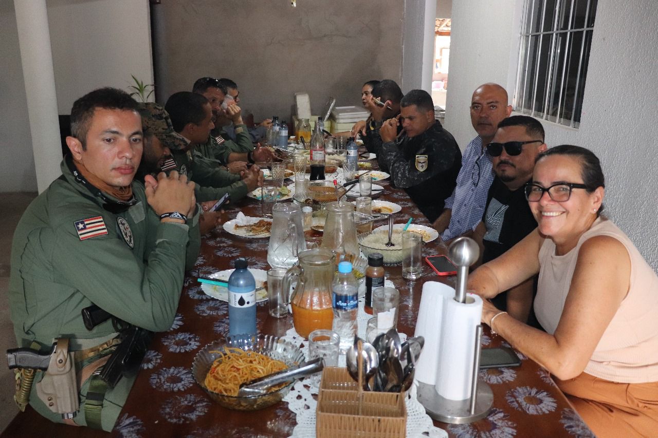 Em Cidelândia foram recepcionados pelo Capitão QOPM *Sampaio*, Subcomandante da Unidade. Em São Pedro, foram recebidos pelo Major QOPM César,comandante do 32° BPM e pelo 1°Tenente QOPM Levi Guerra Comandate da 4ª CIA. Durante a visita em São Pedro também estiveram presentes as autoridades municipais, Prefeita Marília Gonçalves e vereadores Romário da Sessé, Sinevaldo e Pr. Eliel que discutiram projetos e ações em conjunto com a PMMA para a Segurança Pública no Município.